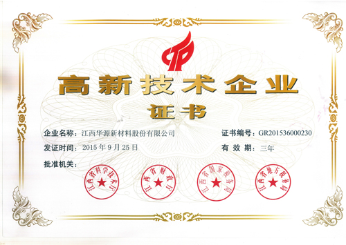 2015年9月25日,我集團(tuán)江西華源新材料股份有限公司被認(rèn)定為江西省高新技術(shù)企業(yè),并獲得江西省“高新技術(shù)企業(yè)證書(shū)”。一直以來(lái),我們都大力鼓勵(lì)及推進(jìn)企業(yè)的技術(shù)創(chuàng)新,目前,我公司已擁有實(shí)用新型專(zhuān)利15項(xiàng),申請(qǐng)專(zhuān)利4項(xiàng)。